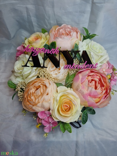 - Anyaga: selyemvirágok, szalag, szöveg, doboz