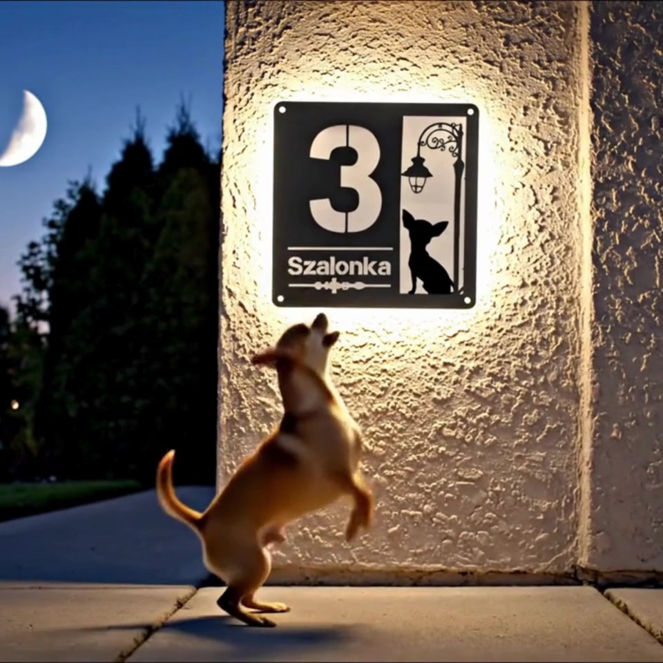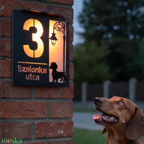 Vidd oda ezt a szeretetet a házfaladra is! Új, prémium szolár házszámtáblánk a klasszikus utcai kandeláberek eleganciáját ötvözi a kutyatartók büszkeségével. Ez a tábla nappal stílusos dísze a háznak, este pedig lágy fényével mutatja az utat a vendégeknek – és persze hirdeti: itt egy igazi négylábú családtag is lakik.
