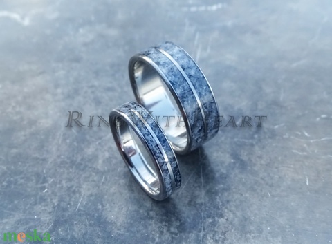 Titán vagy nemesacél gyűrűpár kianittal, kianit gyűrű, jegygyűrű, eljegyzési gyűrű, karikagyűrű, évfordulós ajándék