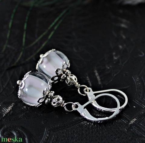 Anais - pasztell szürke-rózsaszín lámpagyöngy fülbevaló, romantikus egyedi MURÁNÓI üvegékszer