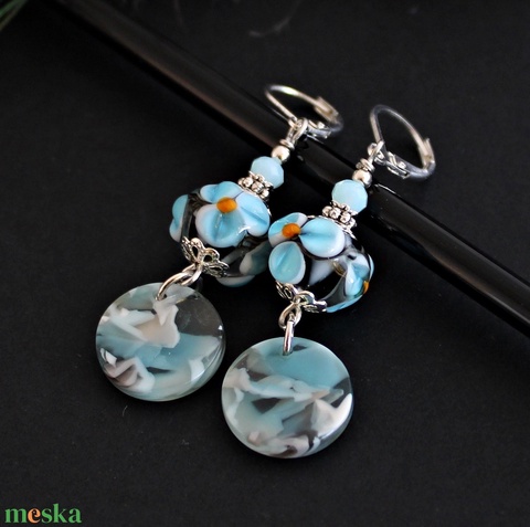 Nefelejcs - kék virágos lámpagyöngy fülbevaló, tavaszi üveggyöngy fülbevaló, MURÁNÓI üvegékszer