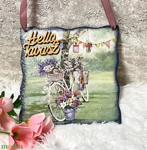 Virágos ajtókopogtató / tavaszi dekoráció bejárati ajtóra