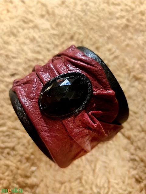 Fekete bordó bőrkarkö fazettált gyöggel