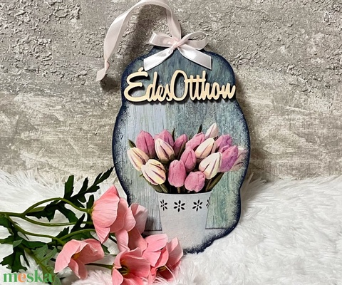 Tulipános fa ajtódísz - virágos ajtódekor