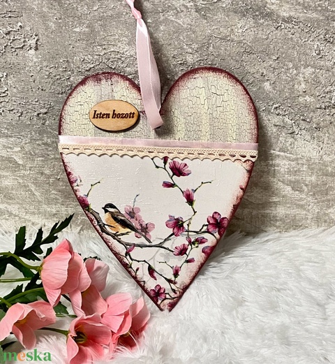 Dekupázsolt ajtódísz - madaras, virágos ajtókopogtató