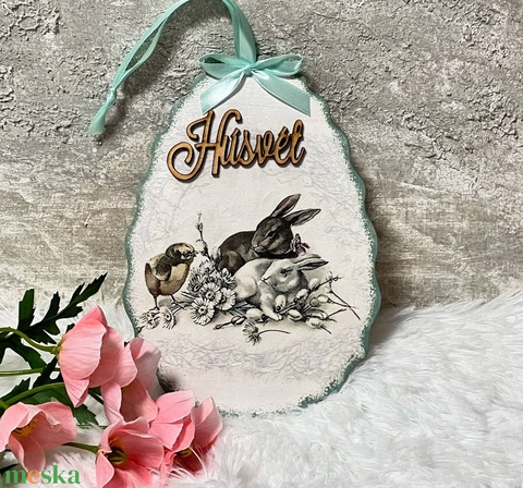 Nyuszis-virágos ajtókopogtató - tavaszi ajtódísz