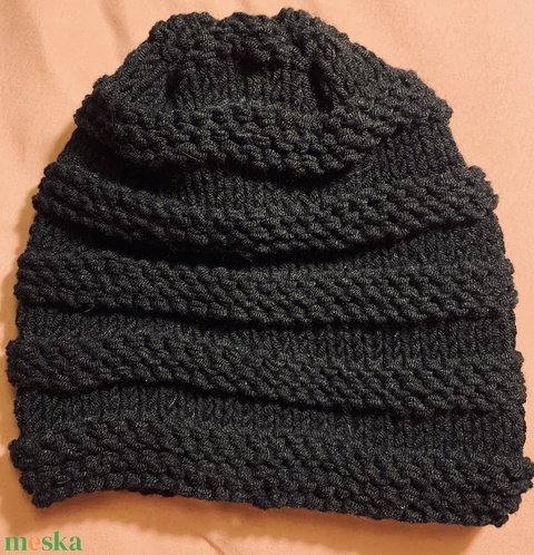 Sapka. Kézi kötésű fekete színűs slouchy fazonú női sapka eladó