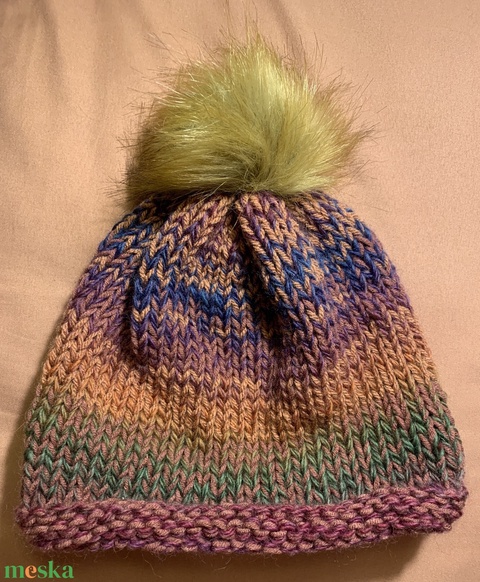 Sapka. Kézi kötésű padlizsán színűs slouchy fazonú női sapka eladó