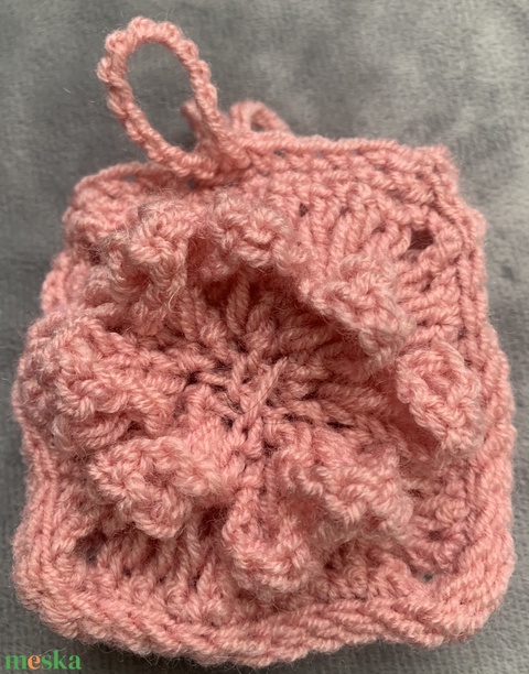Fekete kötött táska dísz rózsaszín virággal díszítve eladó