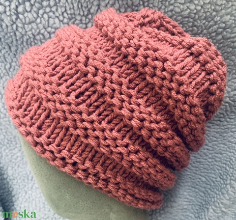Sapka. Kézi kötésű padlizsán színűs slouchy fazonú női sapka eladó