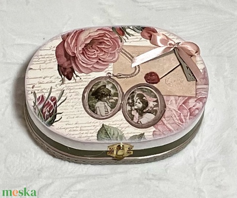- Anyag/Összetevő akrilfesték, lakk, fa, szalag, csipke