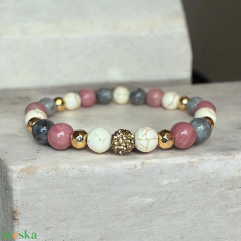 Női ásványkarkötő howlit jáspis rodonit hematit 17 cm
