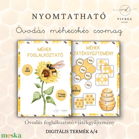 Méhecskés óvodás fejlesztő csomag 4–7 éveseknek – foglalkoztató + nyomtatható játékok