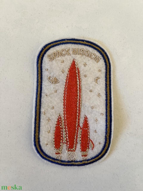 Űr témájú gépi hímzett felvarró- rakéta 2