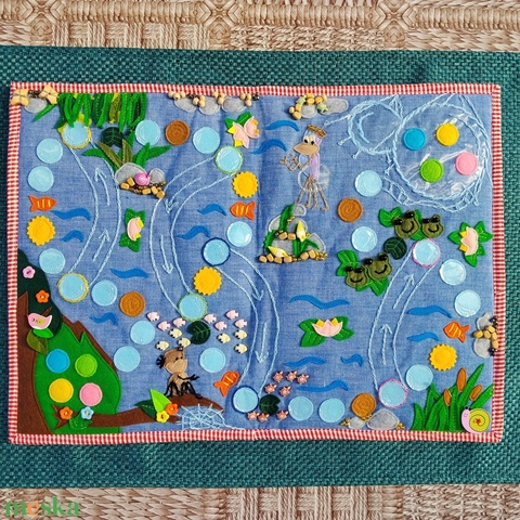 - Anyag/Összetevő pamut vászon, filc, gyöngy, gomb, műanyag dobókocka