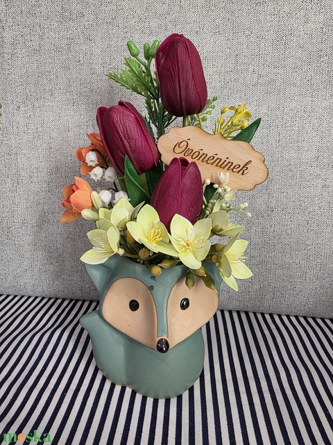- Anyag/Összetevő porcelán, fa, selyemvirág, gumitulupán