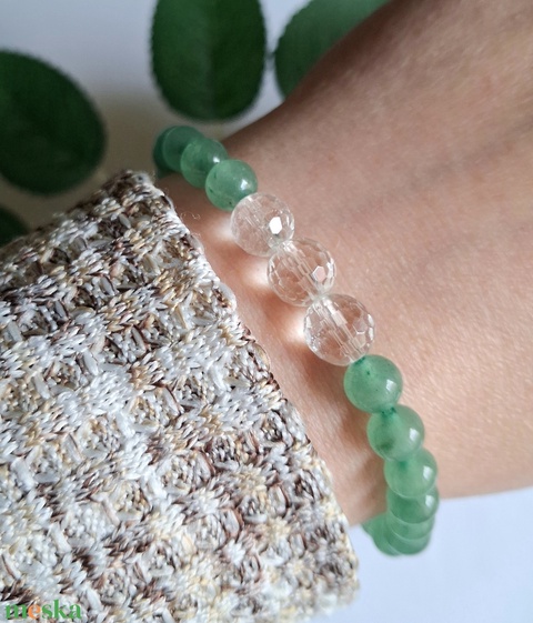 Minimal zöld aventurin és hegyikristály ásvány karkötő
