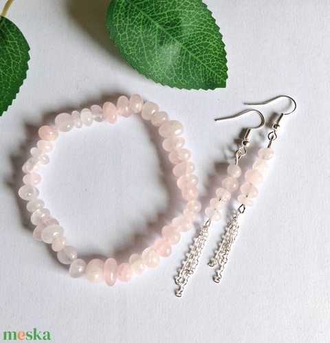 Rózsakvarc splitter ásvány karkötő és fülbevaló szett