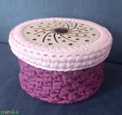 Csillag mintájú horgolt fedeles kosár nőmapra vagy anyák napjára