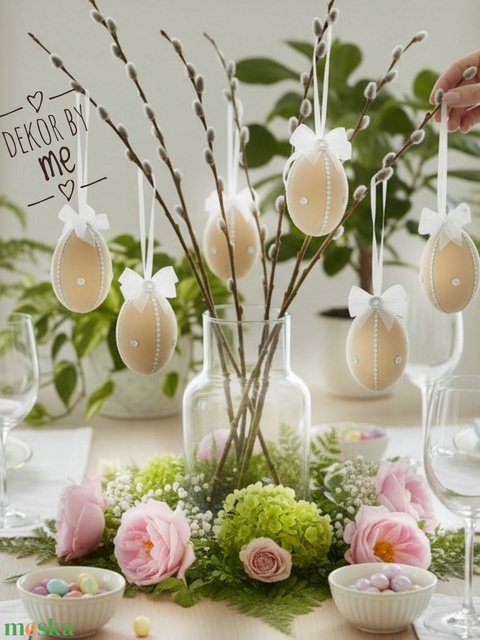 Bársony húsvéti tojás dekoráció – 10 cm, felakasztható, romantikus stílus