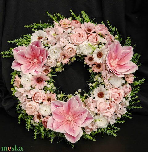 Tavaszi ajtódísz rózsaszín és fehér virágokkal