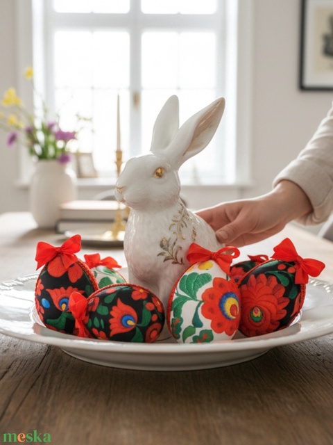 Népi motívumos húsvéti tojás dekoráció – textil borítású, törhetetlen húsvéti dísz