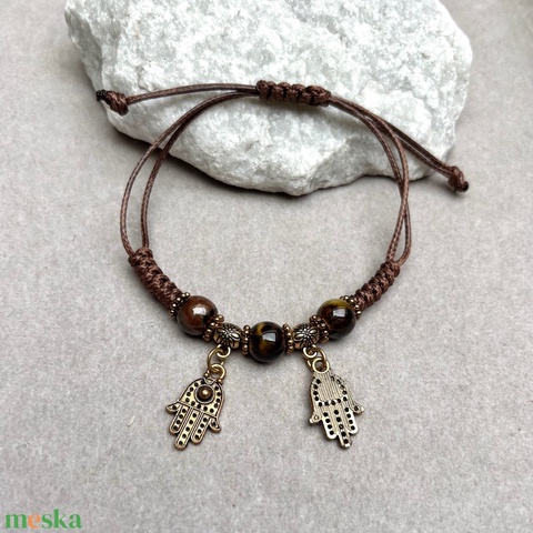 Csomózott makramé állítható méretű védelmező karkötő hamsa kéz charm