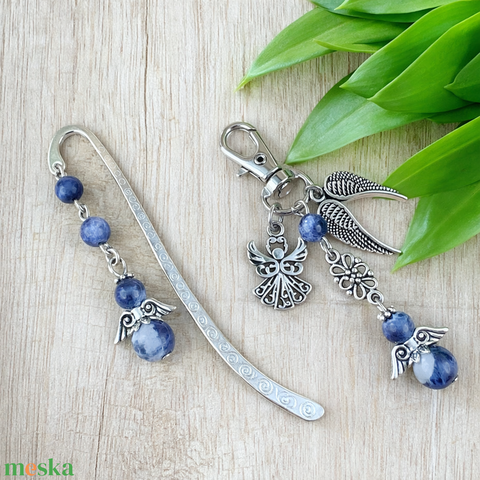 • Könyvjelző, 6 és 8 mm-es szodalit ásványgyöngyből készült angyalkával – elmélyült, koncentrációt segítő kísérő az olvasás pillanataihoz