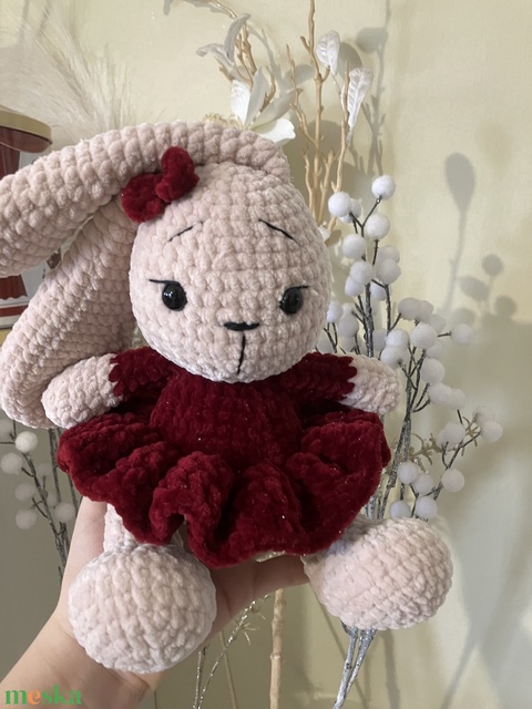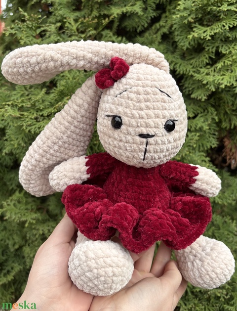 Zsenília fonalból horgolt balerina nyuszi, csillogó ruhával
