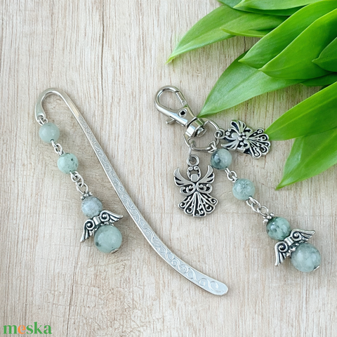 • Kulcstartó vagy táskadísz, ásvány- és fém angyalkával, angyalszárny motívummal – természetes hatású, mégis jelentéssel bíró mindennapi kiegészítő