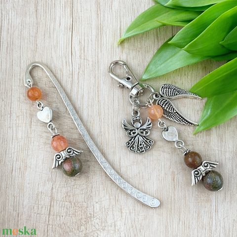 Unakit angyal könyvjelző és kulcstartó szett – ásvány ajándék