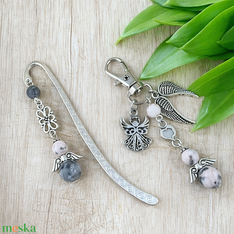 • Könyvjelző, 6 és 8 mm-es zebra jáspis ásványgyöngyből készült angyalkával – kiegyensúlyozott, mégis figyelemfelkeltő kísérő az olvasás pillanataihoz