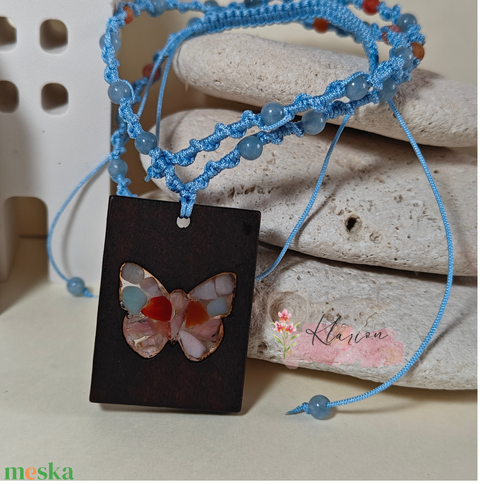 Pillangó fa és ásvány medál makramé nyakláncon