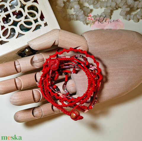 Piroska kertje koi ponttyal, három soros gyöngy és makramé karkötő