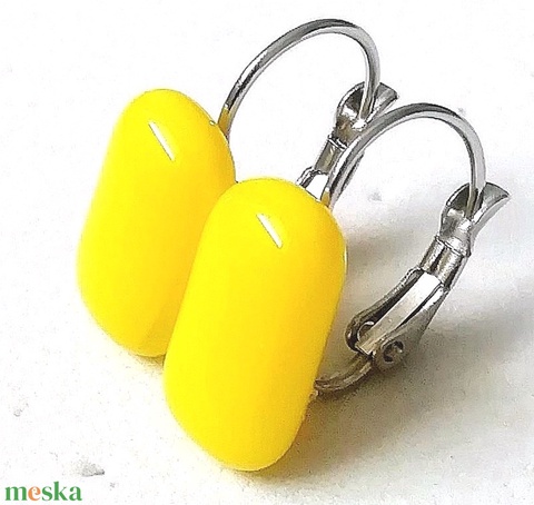 ORVOSI ACÉL! Citrom sárga kapszula formájú trendi üveg fülbevaló.