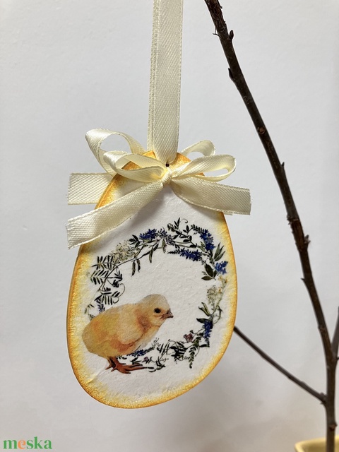 Húsvéti tojás csibés - sárga tavaszi dekoráció