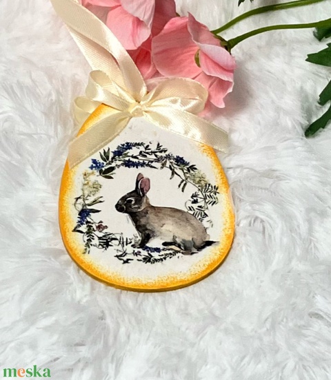 Húsvéti tojás nyuszis mintával - sárga tavaszi dekoráció