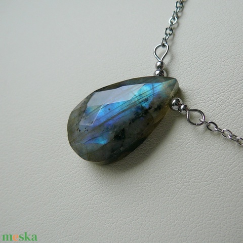 Orvosi acél szerelékre akasztottam ezt a különlegesen szép labradorit medált.