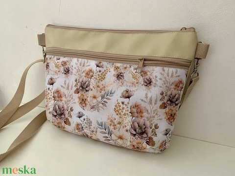 Beige-virág mintás crossbody / válltáska/ keresztpántos táska/ oldaltáska