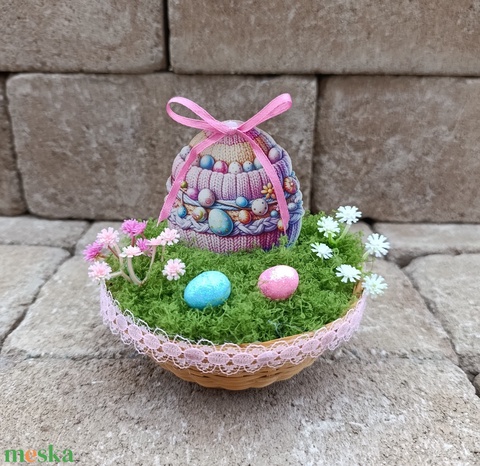 - Anyag/Összetevő fonott kosár, művirág, műfű, hungarocell tojás, fadekor tojás, csipkeszalag