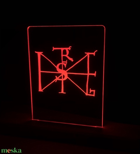Lézergravírozott, élvilágított dekorációs tábla, fa, asztali foglalattal, 12V-os tápegységgel.