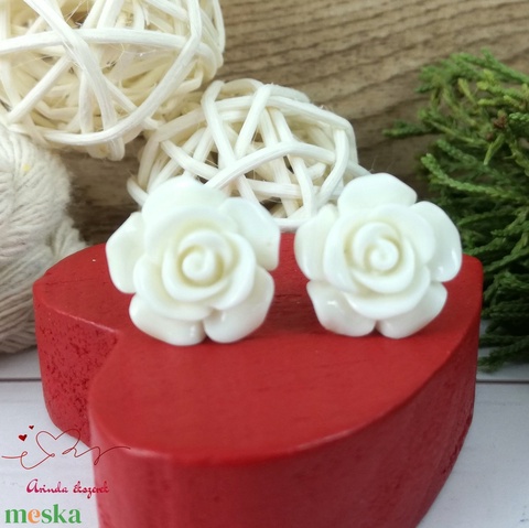 14 mm fehér rózsa bedugós fülbevaló – nemesacél alapú romantikus virág ékszer, ajándék nőknek