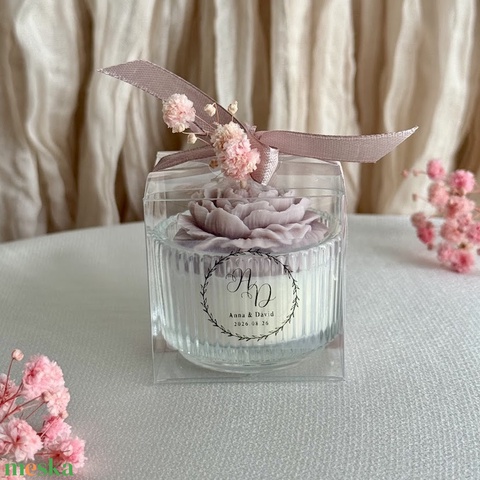 Esküvői köszönőajándék gyertya – egyedi felirattal – szójaviasz