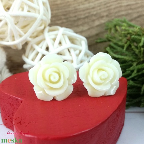 14 mm krém rózsa bedugós fülbevaló – nemesacél alapú romantikus virág ékszer, ajándék nőknek