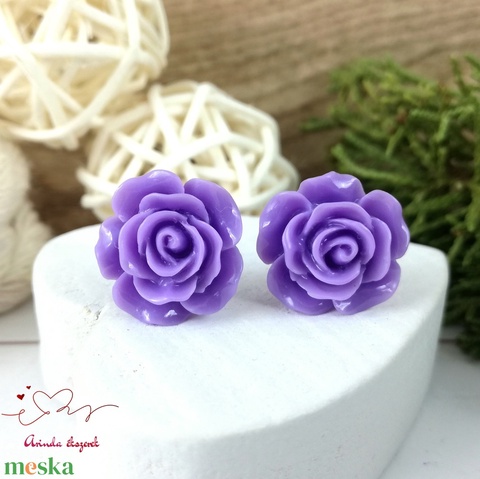 14 mm lila rózsa bedugós fülbevaló – nemesacél alapú romantikus virág ékszer, ajándék nőknek