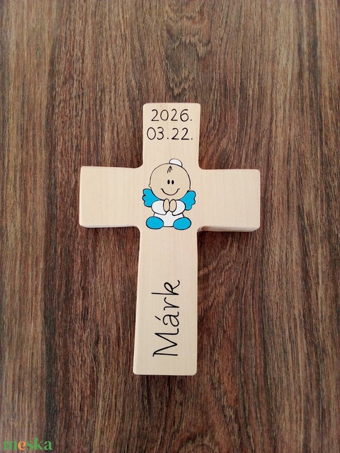 Fa kereszt, kereszt, vallási tárgy, keresztelő ajándék, újszülött ajándék