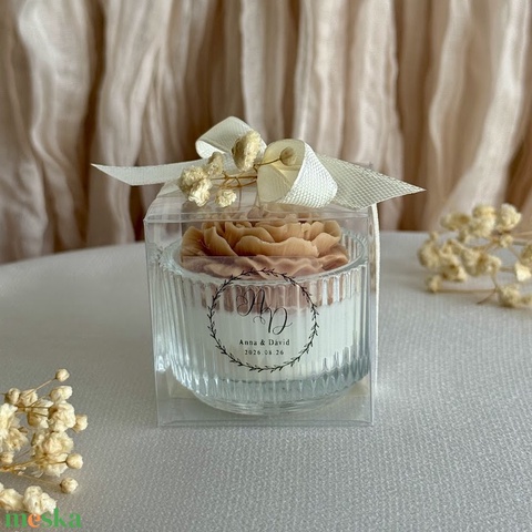 Esküvői köszönőajándék gyertya – egyedi felirattal – szójaviasz