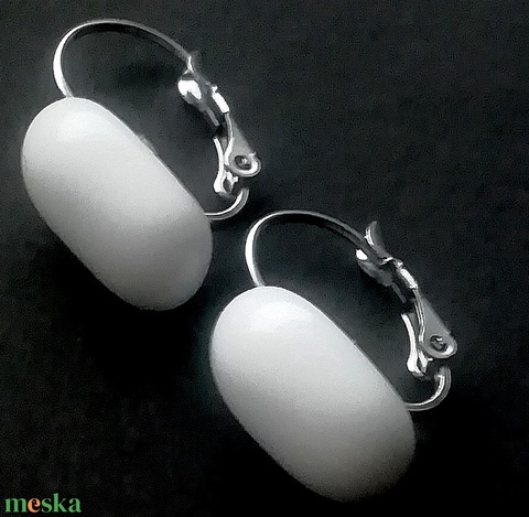 ORVOSI ACÉL! Fehér kapszula formájú trendi üveg fülbevaló.