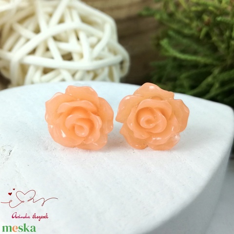 Barack rózsás bedugós fülbevaló – 10 mm, nemesacél alapú elegáns virág ékszer