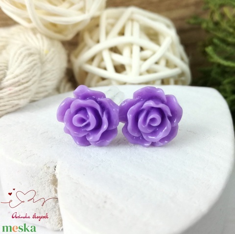 Lila rózsás bedugós fülbevaló – 10 mm, nemesacél alapú elegáns virág ékszer